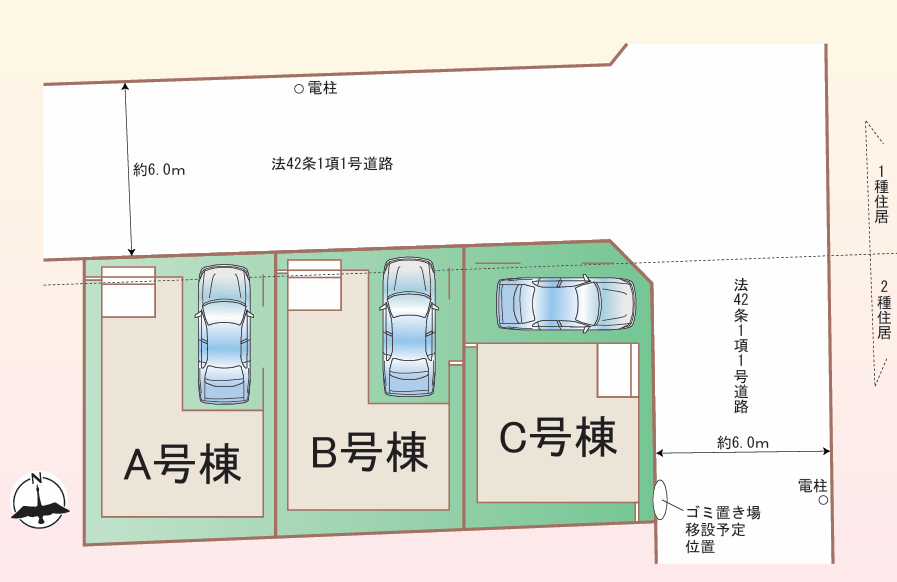 - システムキッチン、オールインワン浄水栓、初期洗浄機付、1坪タイプシステムバス、シャンプードレッサー、シャワートイレ、複層ガラスサッシ、24時間換気システム、シックハウス対策、玄関断熱ドア、TVドアホン、下駄箱、外壁サイディング、ビルトインガレージ(12.42㎡)