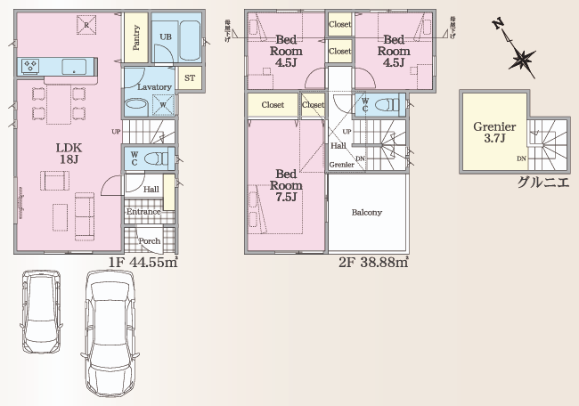 ・2階建(3LDK)、延床面積83.43m2で1,450万円~