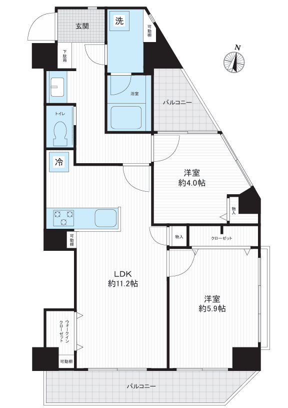 ウォークインクローゼット、下駄箱、オートロック、バルコニー(面積:5.8㎡)