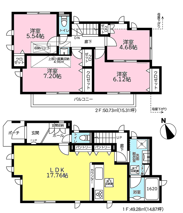 1.25坪UB、浴室乾燥機、大型浴室TV、ハンドシャワー付洗面台、リネン庫、ウォシュレットトイレ(1F・2F)、セカンド洗面台