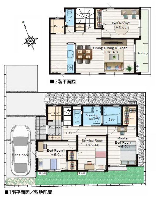 - システムキッチン、食器洗い乾燥機、浄水器一体型シングルレバー水栓、浴室換気暖房乾燥機、ガス温水式床暖房、Low-E複層ガラス、パントリー、W.I.C、S.I.C、シューズクローク、バルコニー、プライベートガーデン