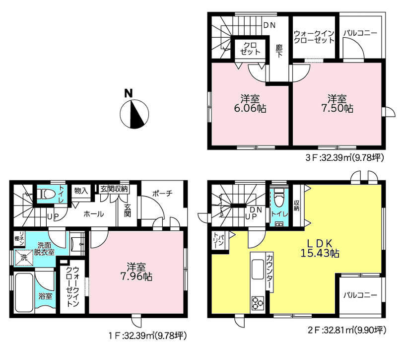【相模原市緑区<東橋本>2号棟】駅徒歩15分/地震に強い家/3階建/2階リビング/収納豊富/2面バルコニー/都市ガス/生活便良好