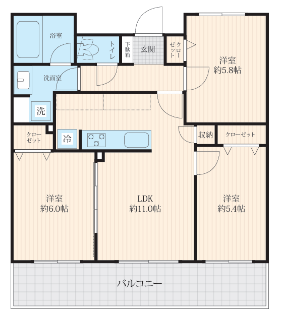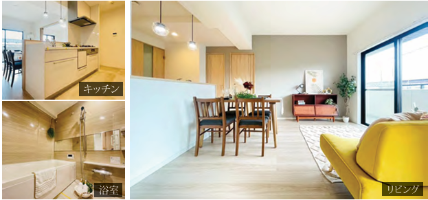 キッチン(食洗器・浄水器付)、ユニットバス(浴室乾燥機・追い焚き機能付)、洗面化粧台、トイレ、フローリング、建具、クロス、フロアタイル、照明器具、ガス給湯器、ハウスクリーニング
