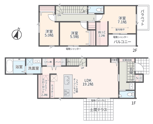 制震装置マモリー搭載、太陽光発電システム、リビング天井高2,600、リビングハイドア、LDKダウンライト、ファミリークローゼット、W.I.C、S.I.C、土間テラス、アクセントクロス、樹脂サッシ、網戸、室内物干し、センサーライト、カラーモニター付インターホン、玄関スマートロック、宅配BOX、電動シャッター、外壁タイル貼り、外水栓、EVコンセント