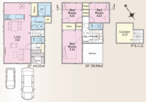 敷地面積33坪/駐車2台/LDK17帖/収納豊富/都市ガス/生活便良好