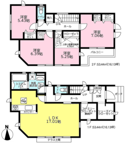 【相模原市緑区<下九沢>3SLDK】敷地面積22坪/全居室2面採光/