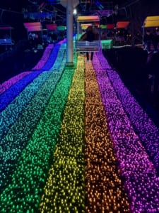 様々なレインボーカラーに変化しながら入園口まで導いてくれます。