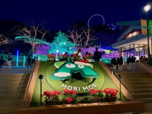 売店を出ると「ウェルカム広場」では、“MORI MORI兄弟”がお出迎え