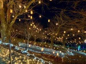 トンネルの先には、空からランタンの光が降りそそぐ「光の森」