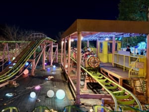 不思議な鏡の迷路、トロッコ型コースターなどのアトラクション!