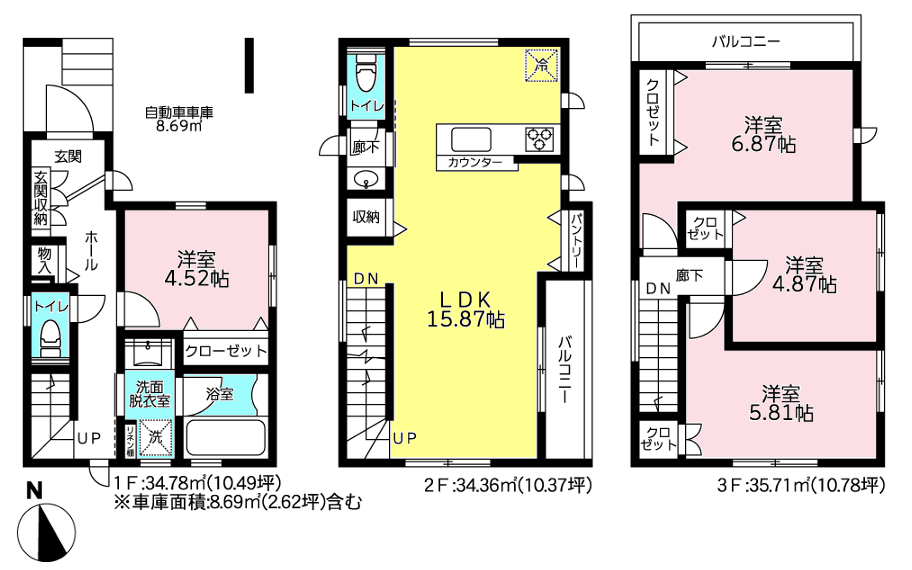 【相模原市緑区<東橋本>2号棟】駅徒歩15分/地震に強い家/3階建/2階リビング/収納豊富/2面バルコニー/都市ガス/生活便良好